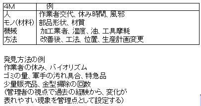 何かが変化するの何かとは、4Mをさす(人、モノ、機械、方法)