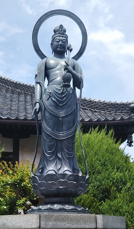 立派なお寺である境内を見て回るとひときわ大きな観音像がある