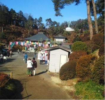 くぼ地の頂上には見下ろすように観音様が立っており、展望台が付い