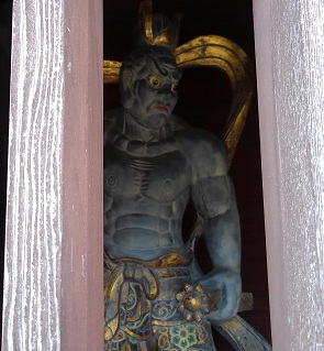 正面がお寺であり、門の横から車を入れられる