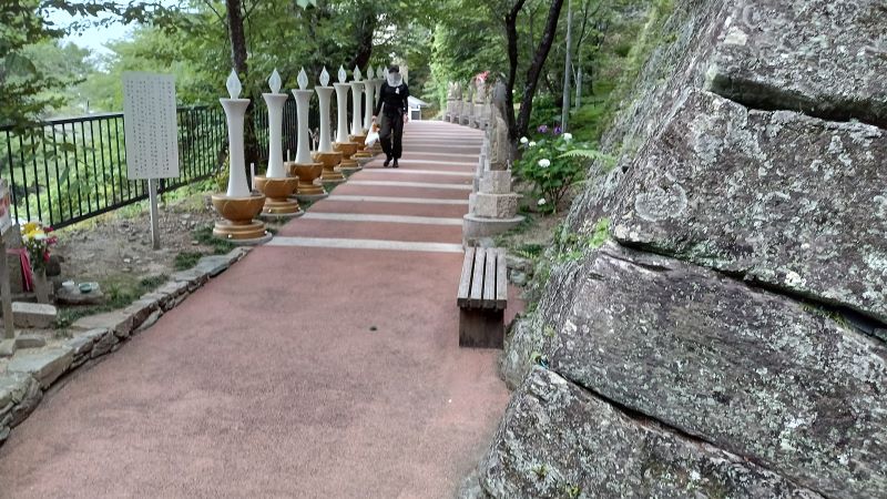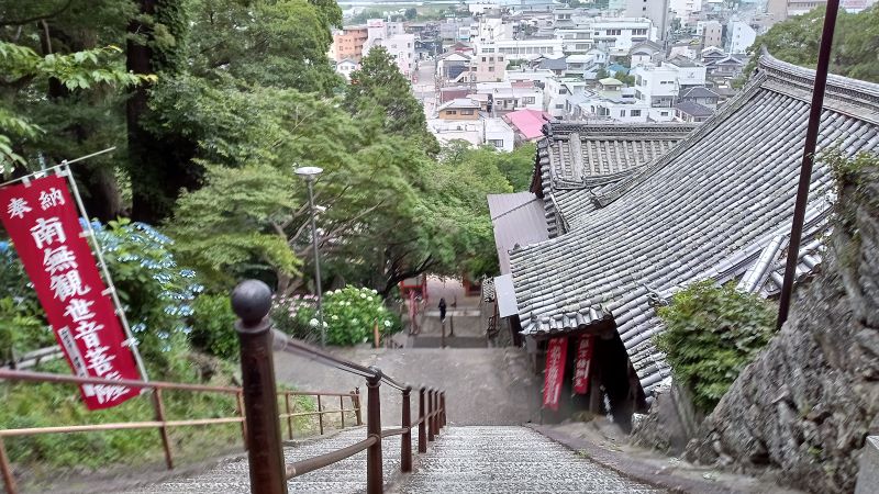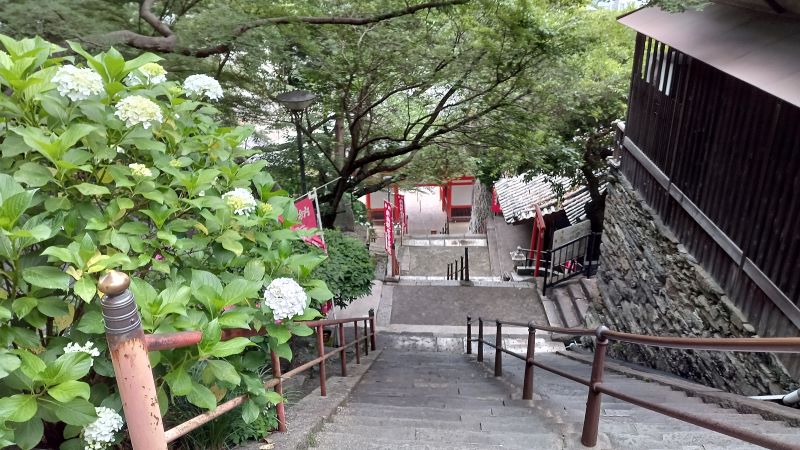 約300段の階段を5回くらい休みながら登った