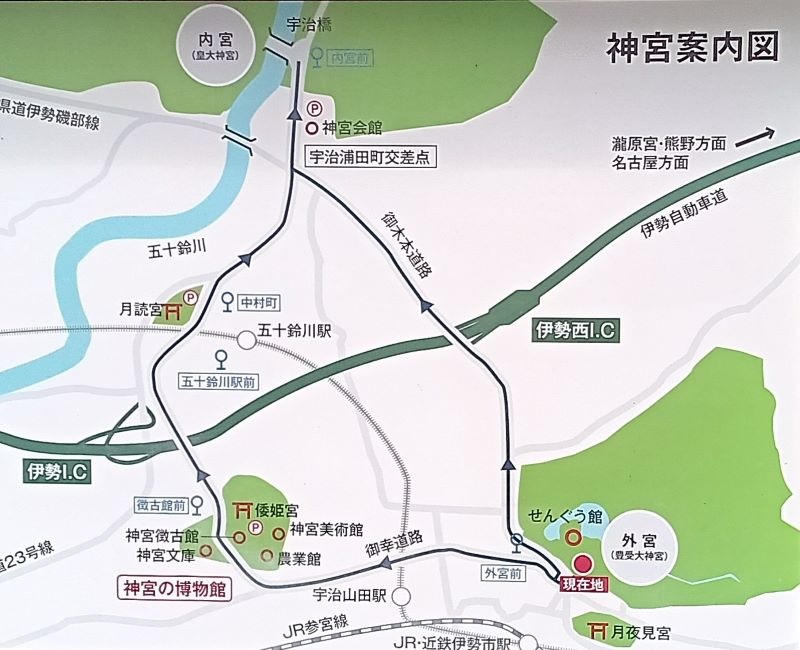 <内宮との位置関係が案内されているがおかげ横丁が分からない>