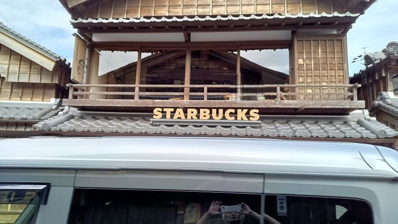 <こんな古風なスターバックスは初めて見た>横町の雰囲気になじまない建物は