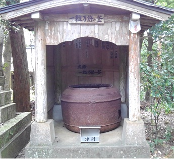 ここには弘法大師の歩く像や、癌封じの椿、僅かの米で万倍の