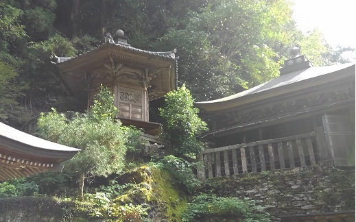 本堂と反対の崖にお堂や鐘突き堂、六角堂といった