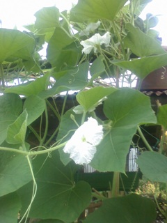 徐々につるが伸びてとうとう豚小屋の屋根に届きそうになって、花が